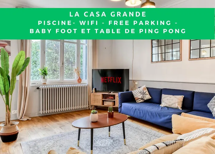 La Casa Grande - Piscine - Wifi - Parking 빌라는 비유 다리에서 20분 도보 거리에 있으며 musée des beaux Arts에서 18분 도보 거리에 있습니다. 이 빌라는 3개의 침대와 냉장고, 냉장고, 냉장고가 마련된 부엌도 제공합니다.